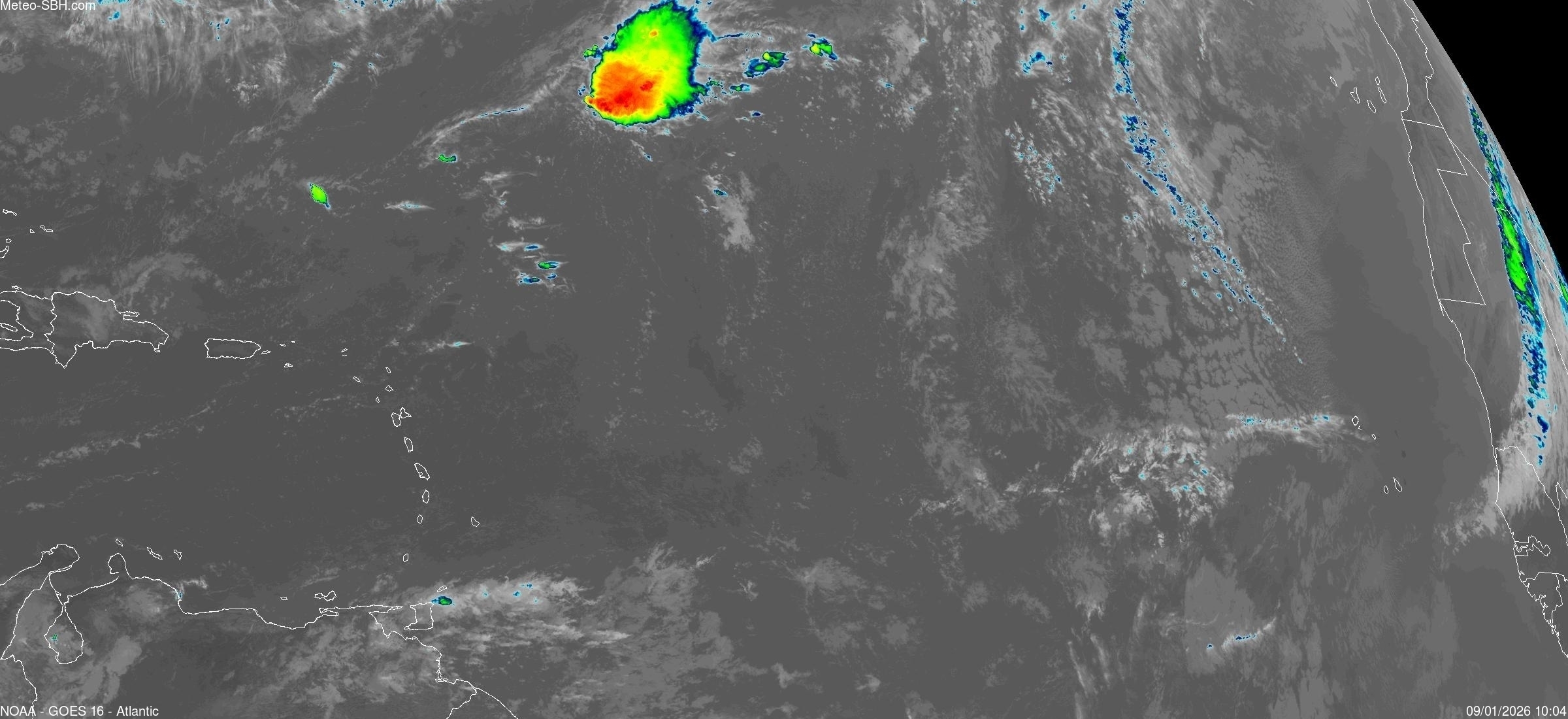 Imagerie Satellite dans l'infrarouge des Antilles - Cliquez ici pour l'animation
